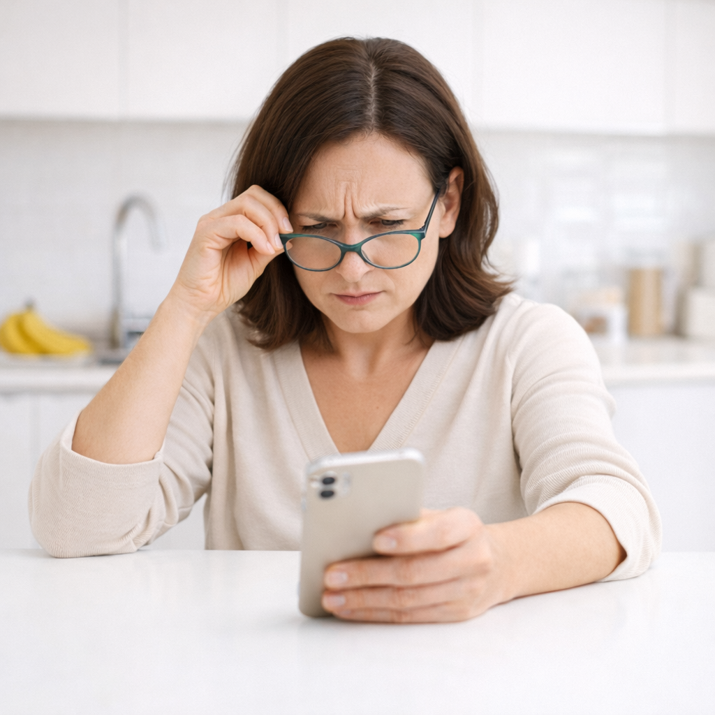 Глаза быстро устают при чтении, приходится отодвигать текст, появляется напряжение и дискомфорт к вечеру