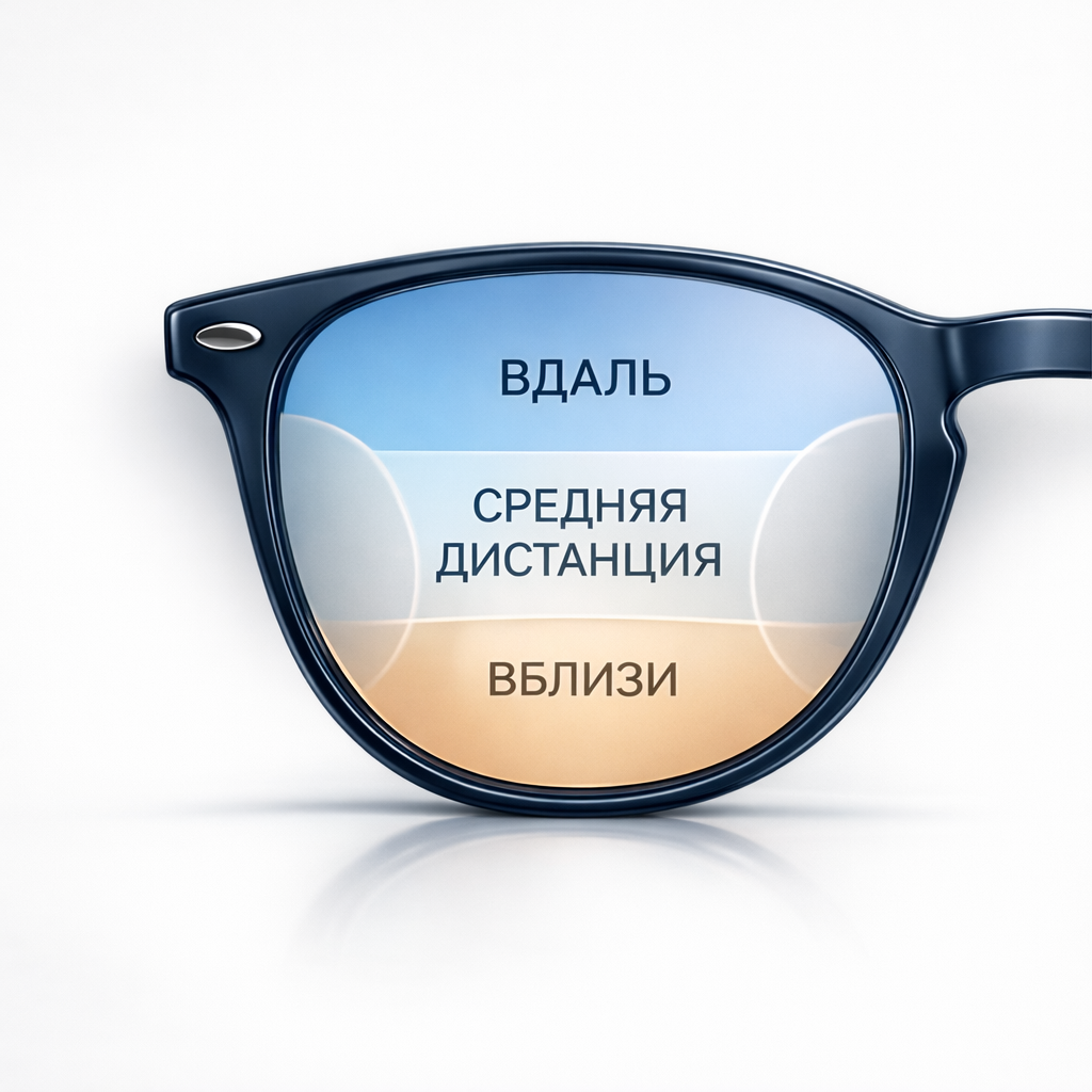 Индивидуальные прогрессивные линзы, чёткое зрение на всех расстояниях без смены очков
